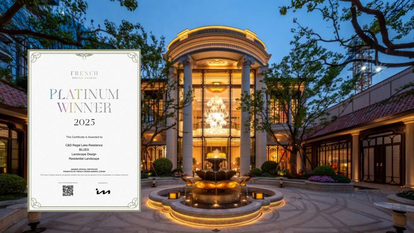 此外,建發(fā)房產(chǎn)“華”字產(chǎn)品系項(xiàng)目宸啟瑞湖和瑞湖公館獲得法國(guó)設(shè)計(jì)獎(jiǎng)——年度地產(chǎn)示范區(qū)景觀類別最高榮譽(yù)“鉑金獎(jiǎng)”,體現(xiàn)業(yè)內(nèi)對(duì)項(xiàng)目設(shè)計(jì)美學(xué)與創(chuàng)新力的認(rèn)可。